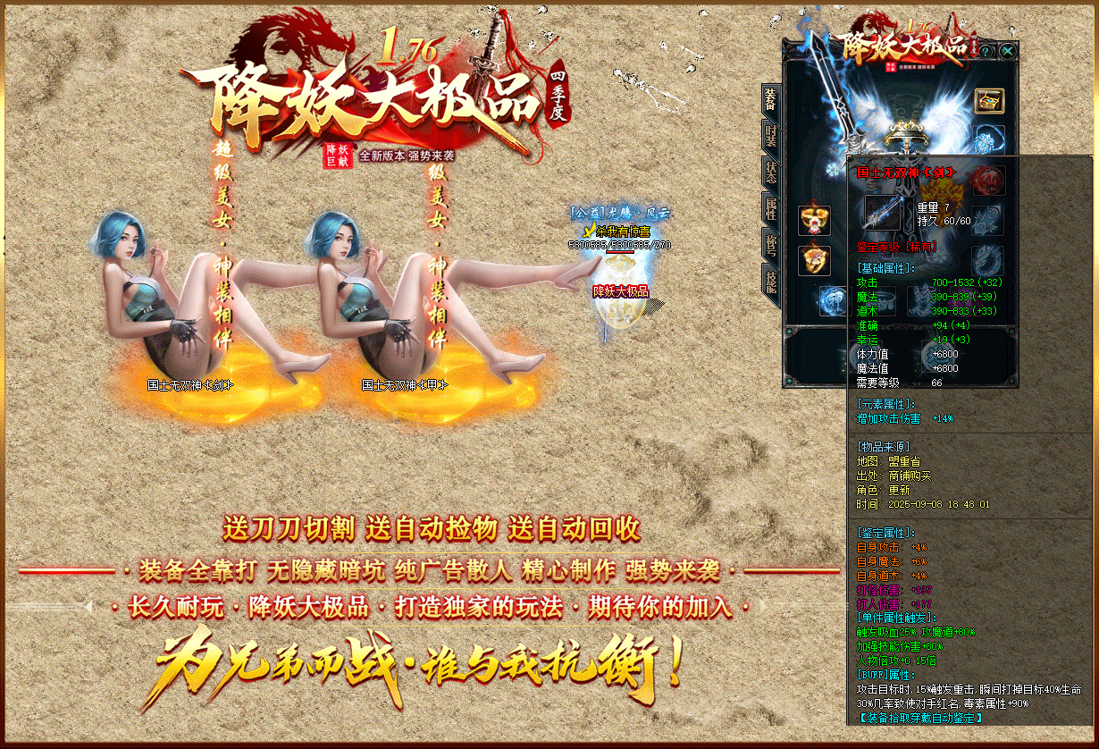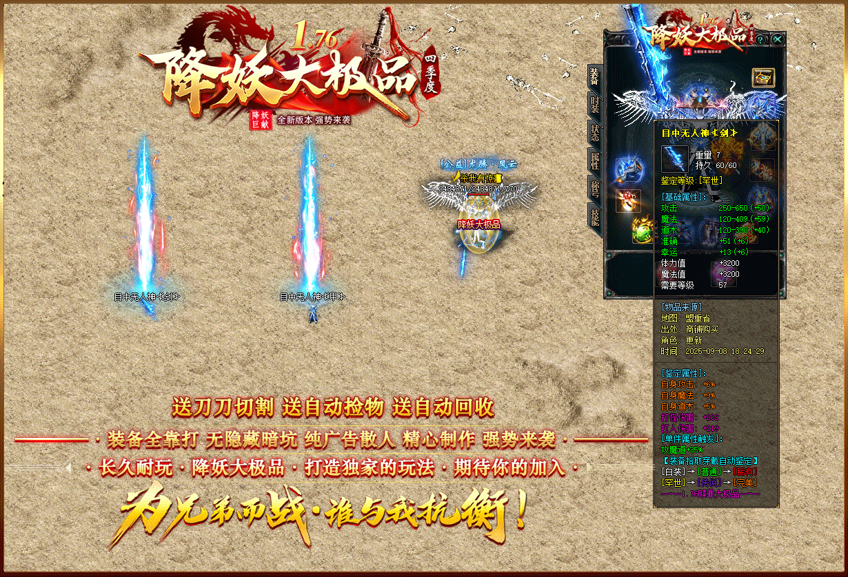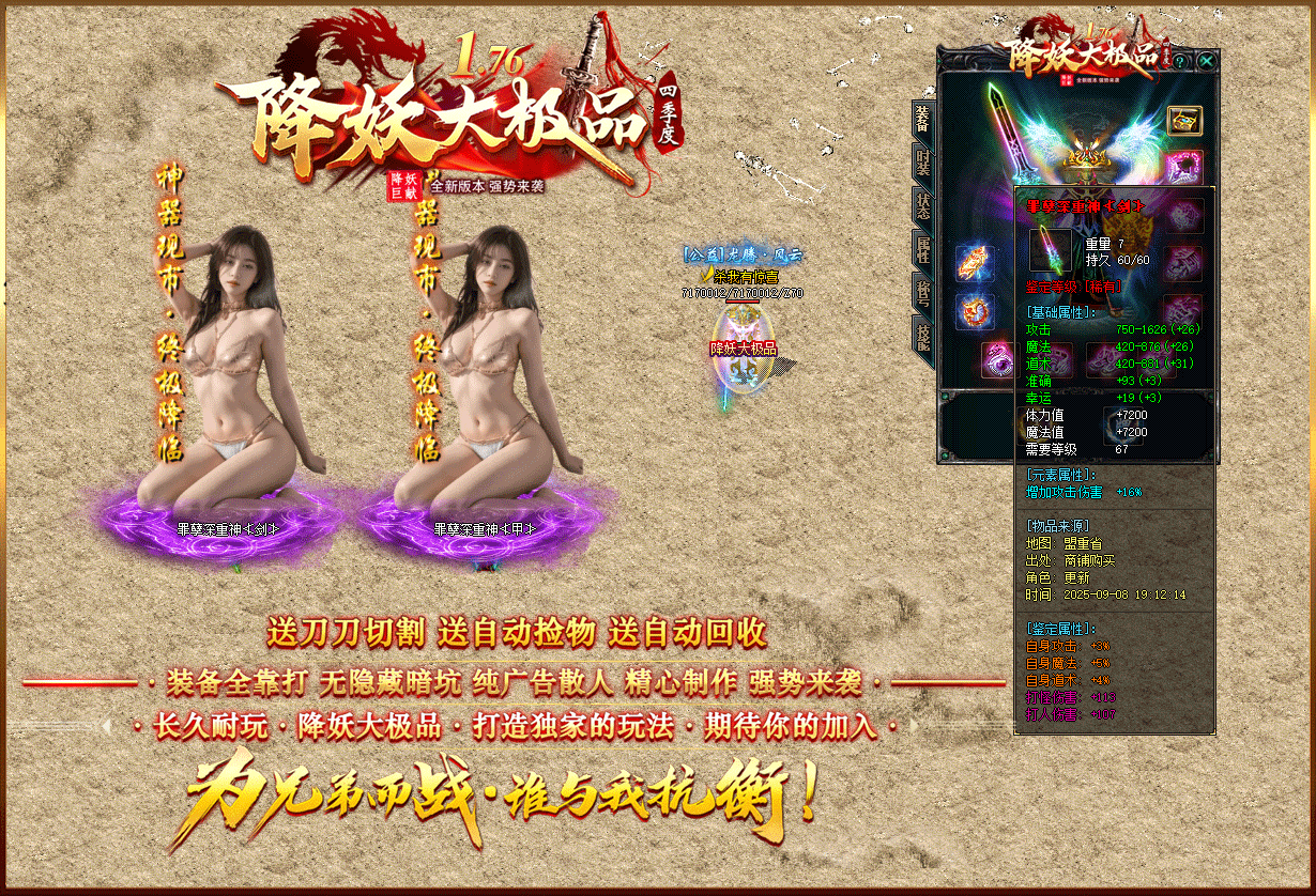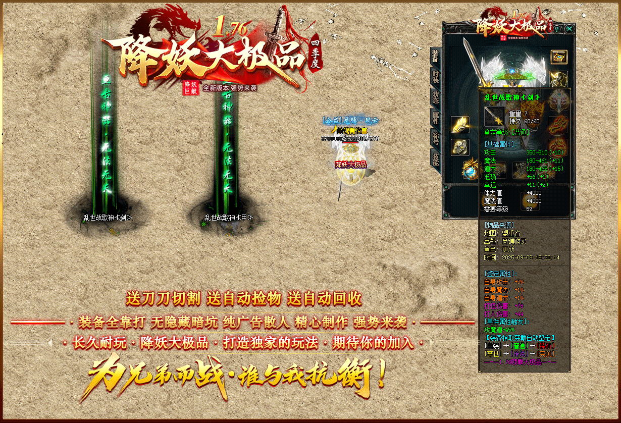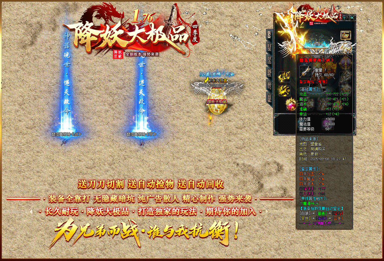 【1.76降妖大极品】:顶赞非常好打 装备全部靠打 沙奖微信红包 无团队全散人