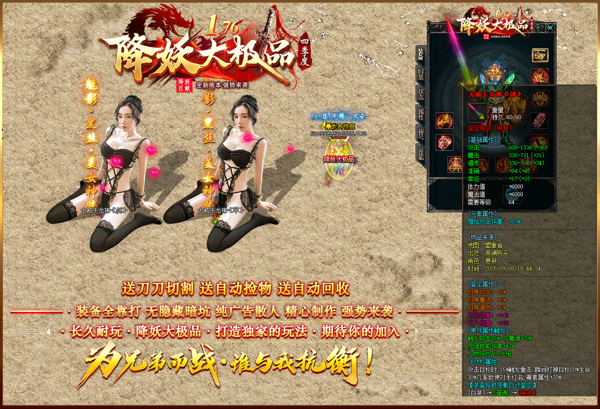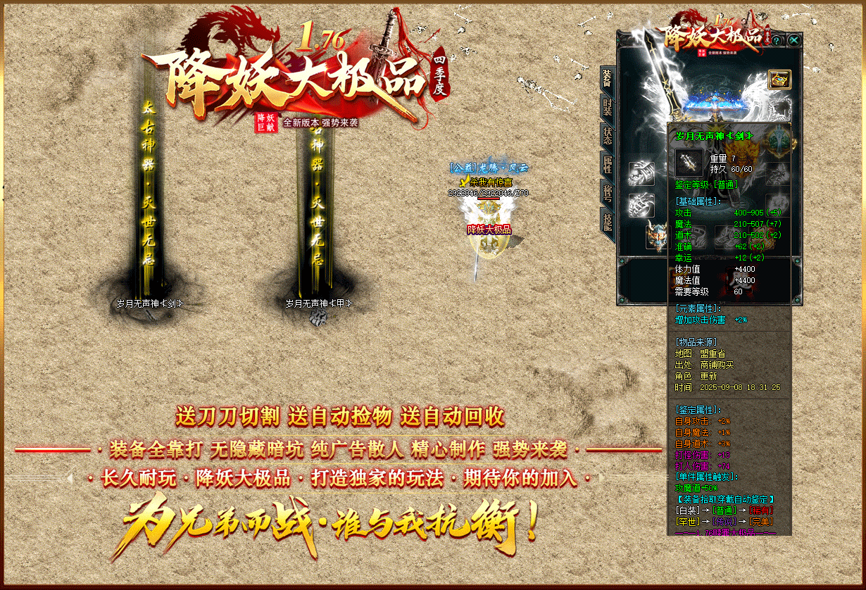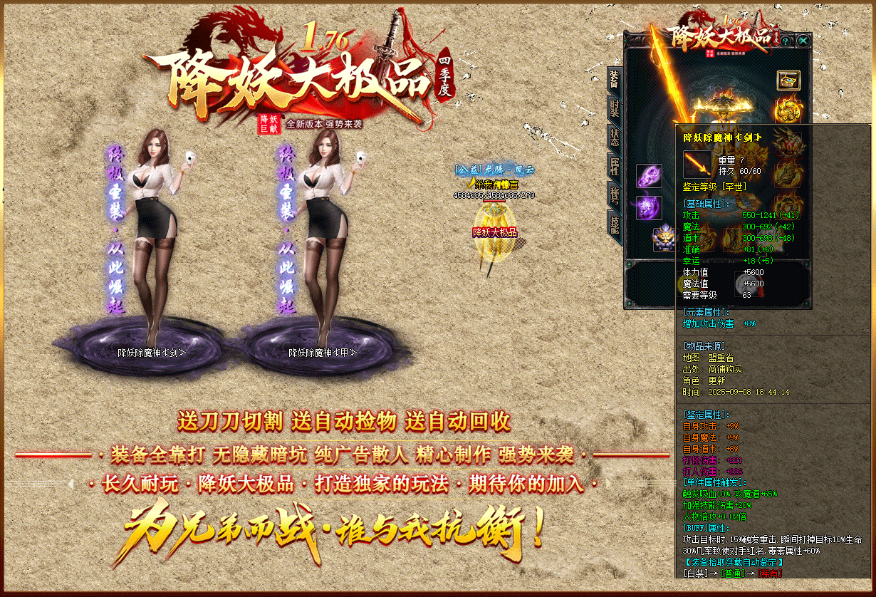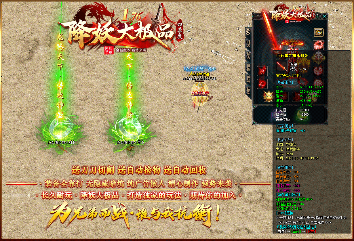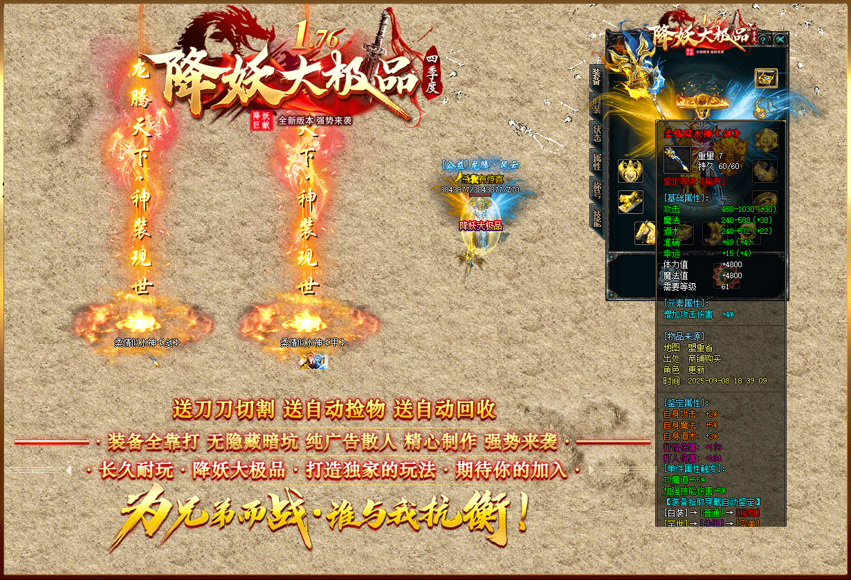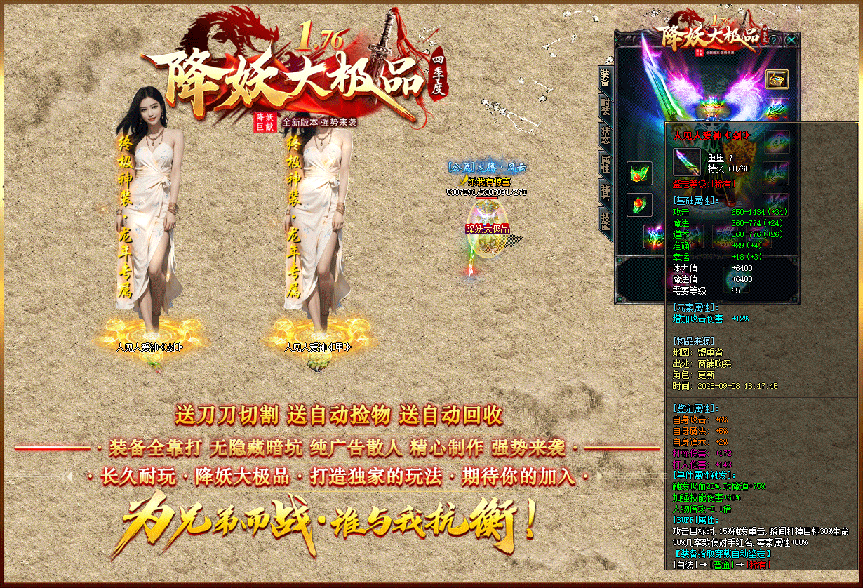 【1.76降妖大极品】:顶赞非常好打 装备全部靠打 沙奖微信红包 无团队全散人
